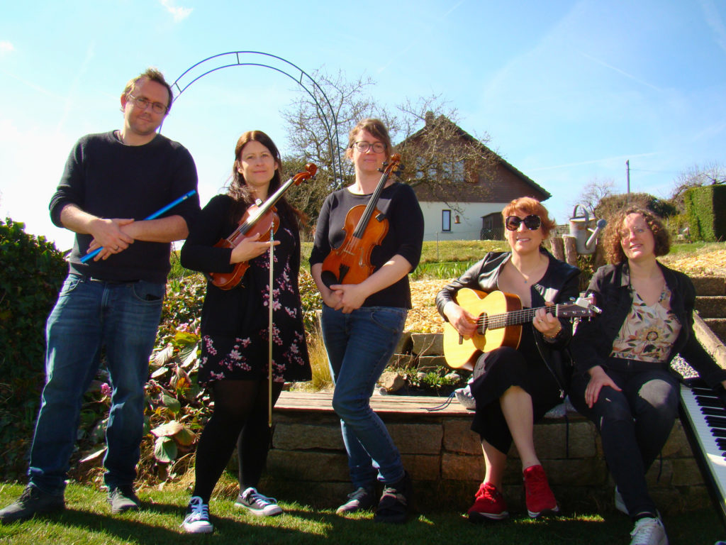 The Cupateas c’est Mélinda Bourquin et Jennifer Meinen aux violons, Laetitia Bugnon au piano, Adrian Moriette au Low Whistle et au Pipe irlandais et Léonie Bugnon à la guitare.